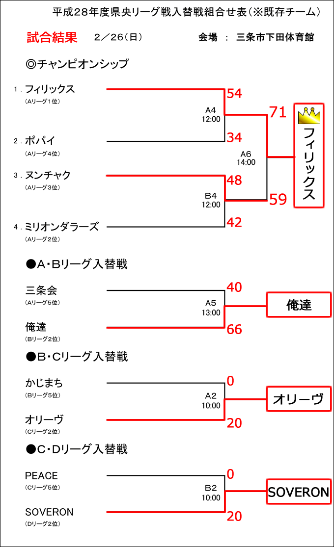 平成28年度 県央リーグチャンピオンシップおよび入れ替え戦