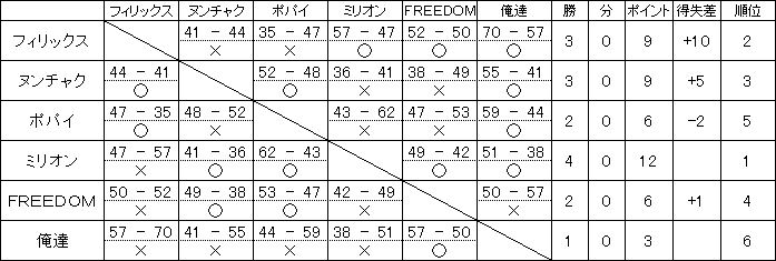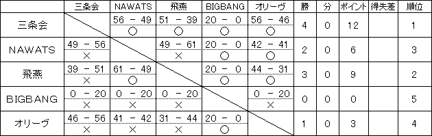 【2017/12/13修正】サンデーズ対switchの試合結果を修正、それにより順位等も変動